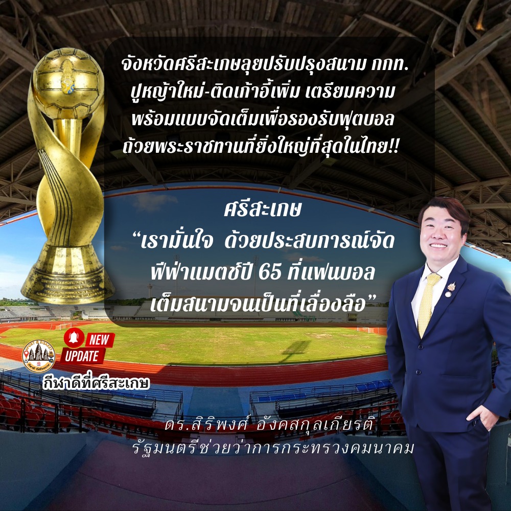 ดร.สิริพงศ์ อังคสกุลเกียรติ รัฐมนตรีช่วยว่าการกระทรวงคมนาคมและนายกสมาคมกีฬาแห่งจังหวัดศรีสะเกษ แย้มข่าวดี! จังหวัดศรีสะเกษลุยปรับปรุงสนาม […]