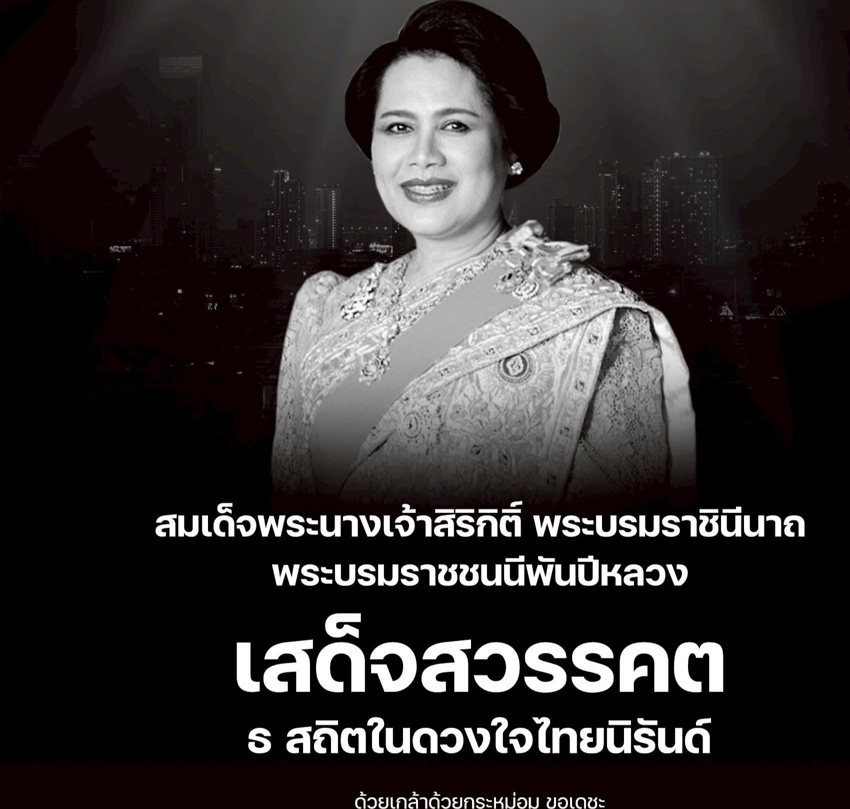 ขอน้อมส่งเสด็จสู่สวรรคาลัย ธ สถิตในดวงใจไทยนิรันดร์ สมเด็จพระนางเจ้าสิริกิติ์ พระบรมราชินีนาถ พระบรมราชชนนีพันปีหลวง