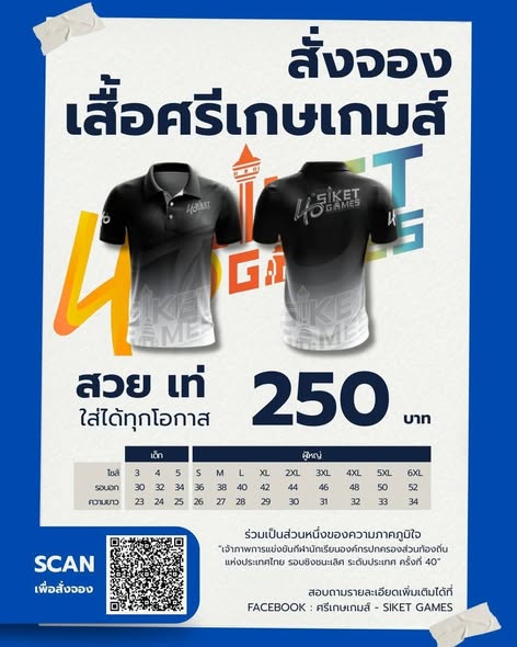 ร่วมเป็นส่วนหนึ่งของความภาคภูมิใจ เจ้าภาพการแข่งขันกีฬานักเรียน อปท.แห่งประเทศไทย ครั้งที่ 40 “ศรีเกษเกมส์” ตัวละ 250 บาท