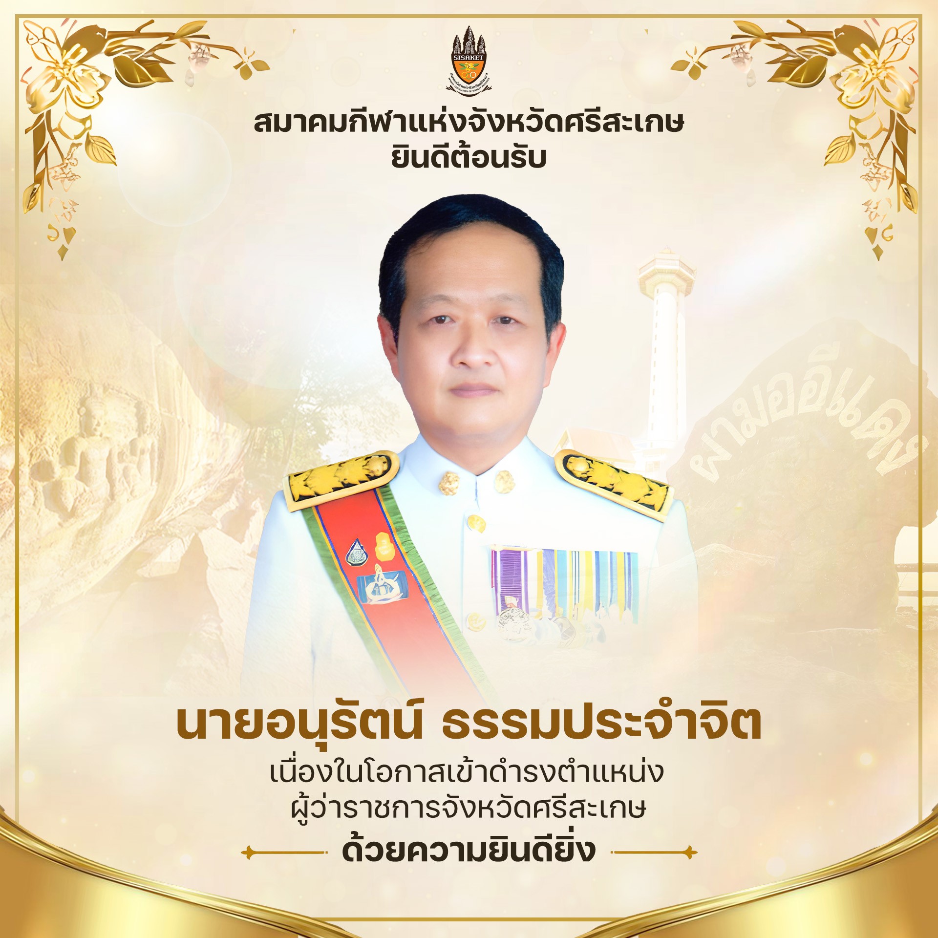 สมาคมกีฬาแห่งจังหวัดศรีสะเกษ ขอแสดงความยินดี และต้อนรับ ท่านอนุรัตน์ ธรรมประจำจิต ผู้ว่าราชการจังหวัดอำนาจเจริญ เนื่องในโอกาสรับตำแหน่ง ผู้ว่าราชการจังหวัดศรีสะเกษ