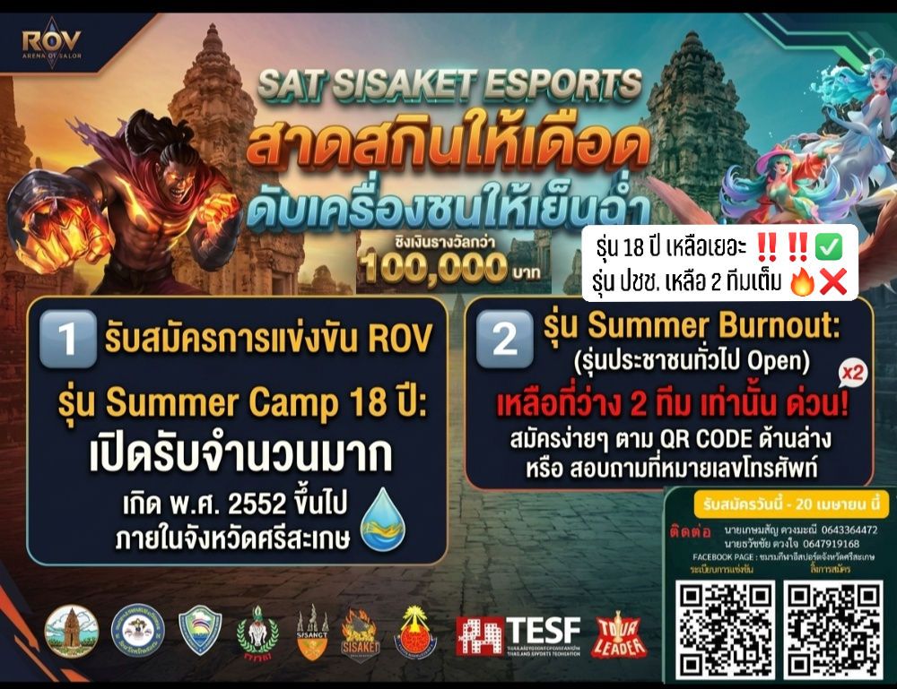 ด่วนที่สุด! โค้งสุดท้าย ROV เงินแสนที่ศรีสะเกษ อัปเดตสถานะการรับสมัครล่าสุดรายการ SAT SISAKET ESPORTS . รุ่น […]