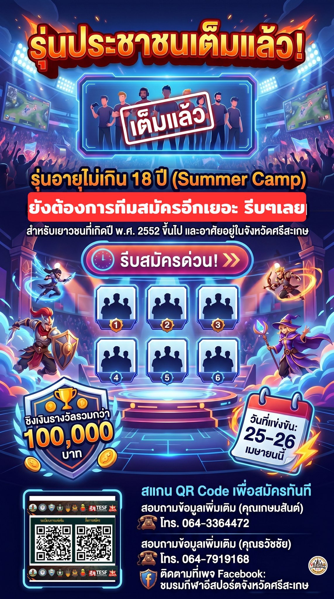 สาย ROV ชาวศรีสะเกษเตรียมตัวให้พร้อม กับการแข่งขันสุดเดือดที่ทุกคนรอคอย SAT SISAKET E-SPORTS SPORTS CITY 2026 […]