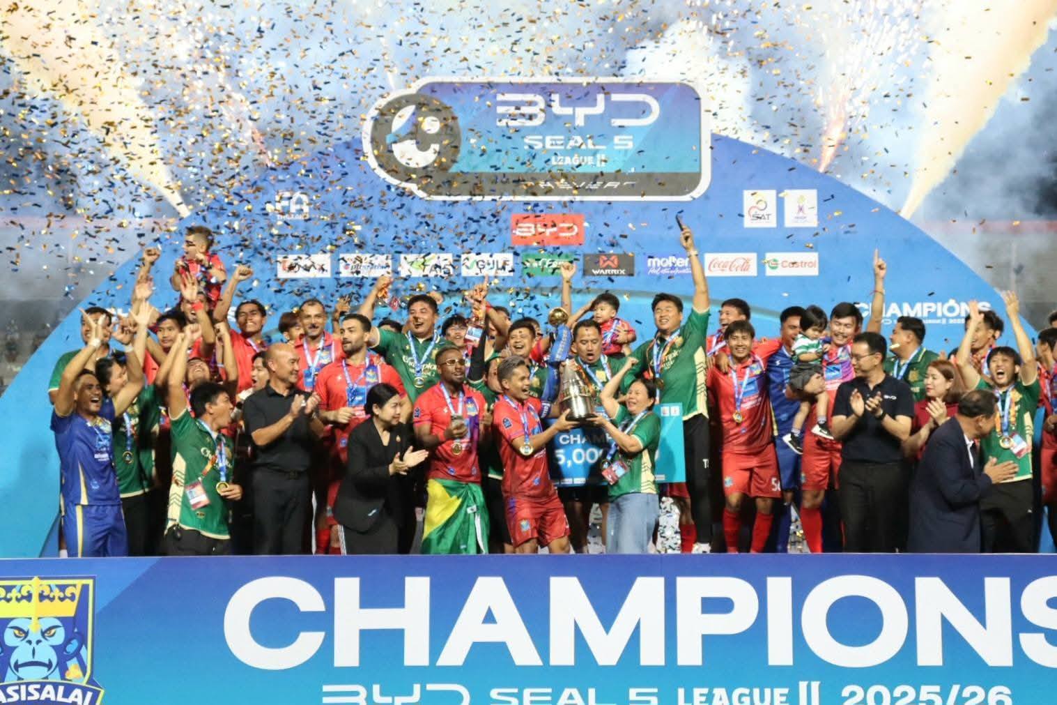 สมาคมกีฬาแห่งจังหวัดศรีสะเกษ ขอแสดงความยินดีกับทีมราษีไศลยูไนเต็ด แชมป์การเเข่งขันฟุตบอล BYD SEAL 5 LEAGUE 2 SEASON 2025/26